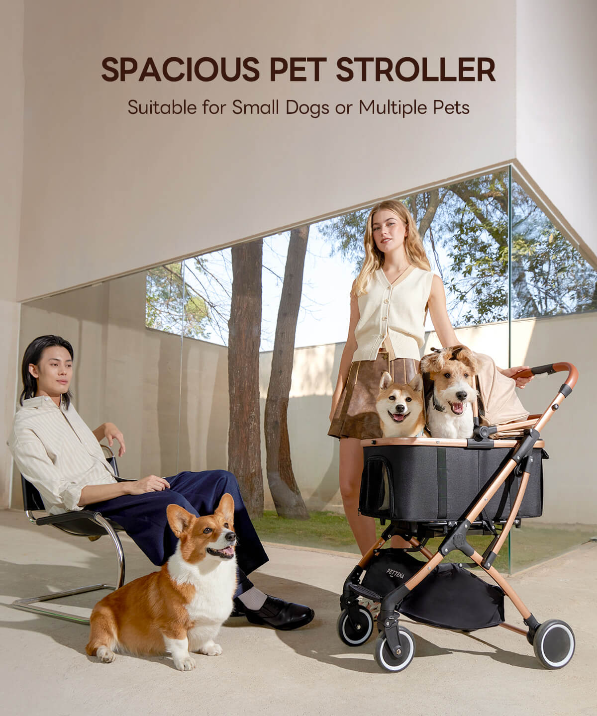 This stroller is thoughtfully designed to provide both comfort and safety for pets, while also ensuring ease of use for their owners. Whether you're strolling through the park or navigating city streets, it brings the warmth of home to every outdoor adventure.