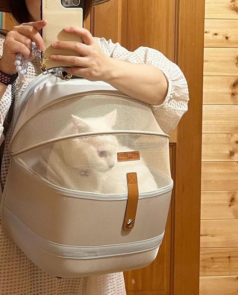 A2: It is made of high-quality and durable polyester and sturdy mesh material. It is waterproof, scratch-resistant, and easy to care for. The adjustable cotton shoulder strap reduces shoulder burden. The interior of the backpack has a cushioned bottom board, providing a comfortable resting space for pets.