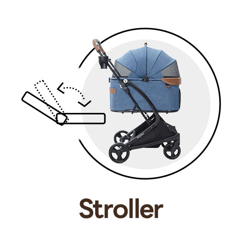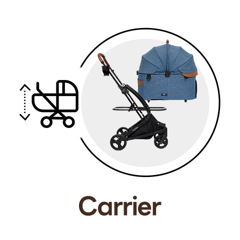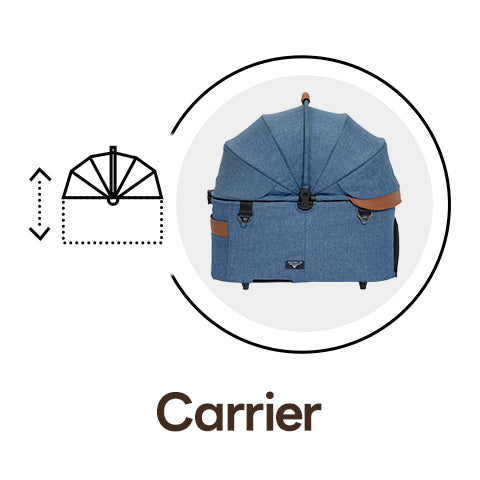 The first detachable stroller with synchronized one-touch folding of both carrier and frame. Its origami-inspired “X-frame” carrier opens with a shake and folds with a press, so you can hold your pet in one arm and fold the stroller with the other.