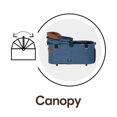 - 8-position adjustable canopy: 180° open both ways, perfect for shade on sunny days or ventilation on warm strolls