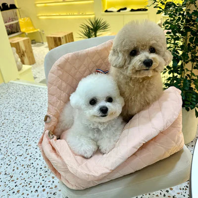 It's the ultimate fusion of fashion and practicality! The diamond-shaped leather design adds style. 😻😻 With four versatile ways to use it, switch between handbag, messenger bag, pet bed, and car carrier anytime. The eco-friendly PP cotton cushion is super soft, giving your pet sweet dreams. 💤🌛Made of tough polyester, it withstands scratching and biting. Cleaning is easy – small stains can be wiped off, while larger ones can be machine-washed. 🫧🧽