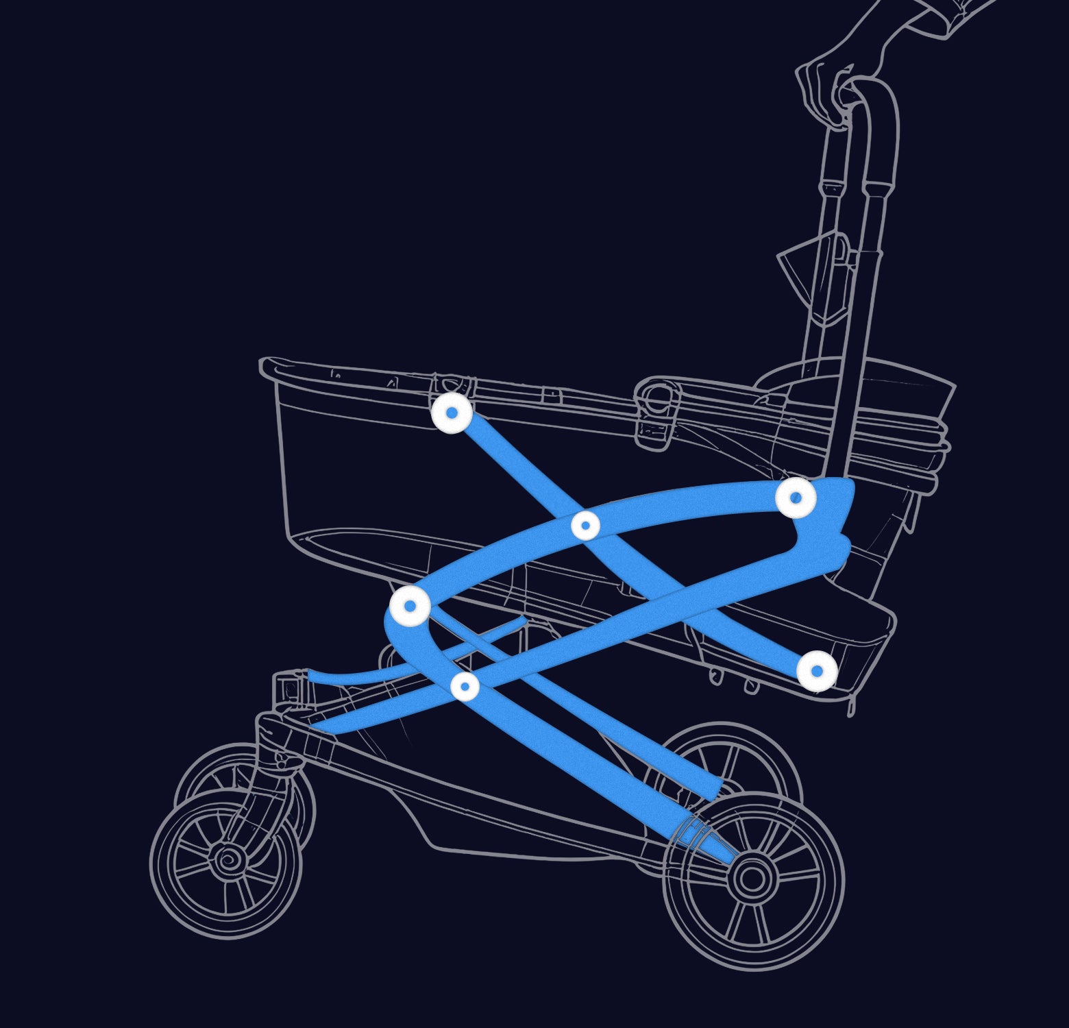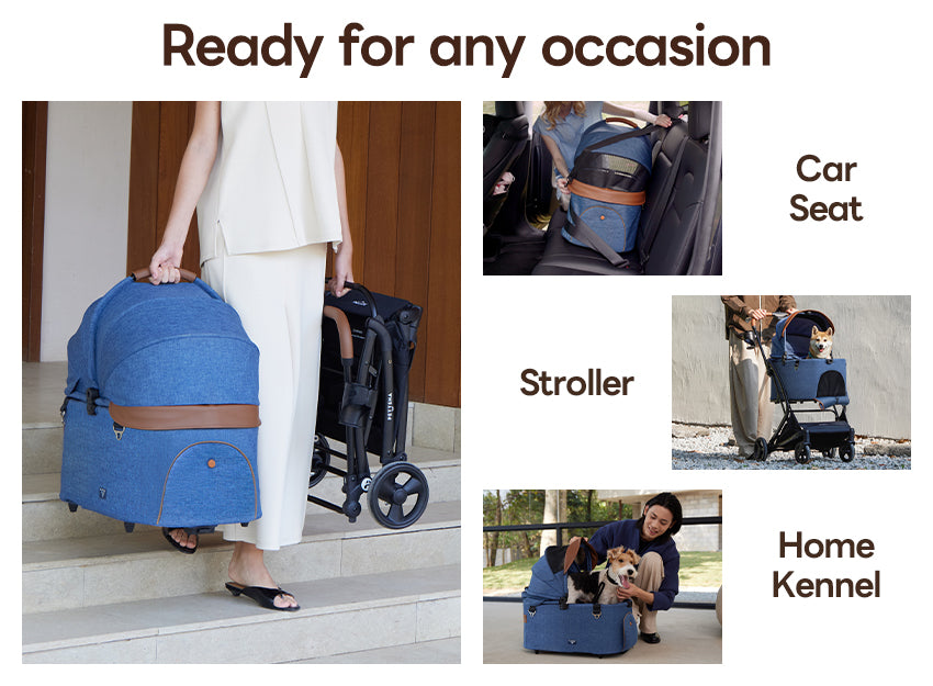 The first detachable stroller with synchronized one-touch folding of both carrier and frame. Its origami-inspired “X-frame” carrier opens with a shake and folds with a press, so you can hold your pet in one arm and fold the stroller with the other.