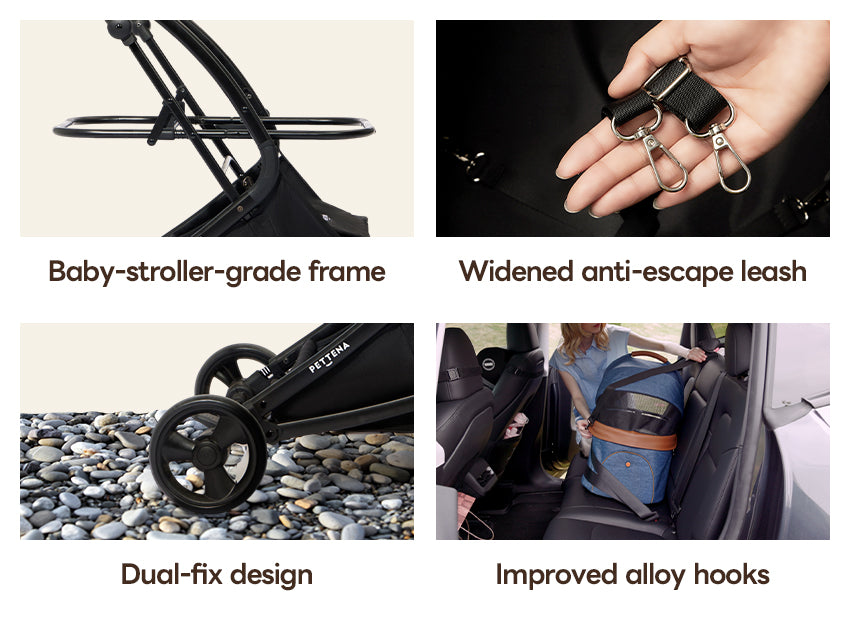 - Baby-stroller-grade frame: high-strength aluminum, EN1888 certified