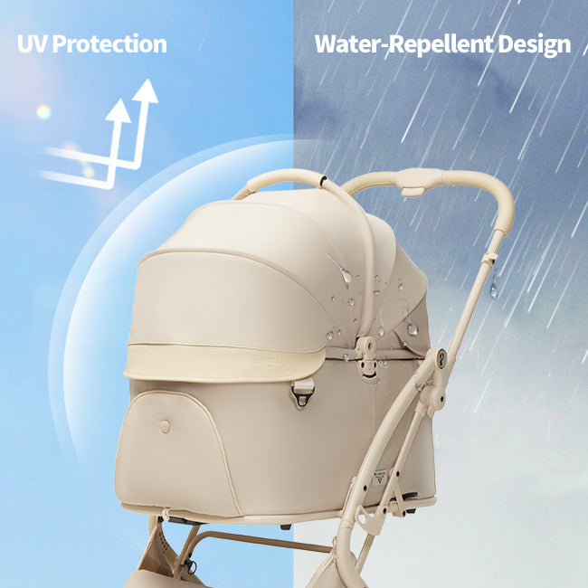 - 8-position adjustable canopy: 180° open both ways, perfect for shade on sunny days or ventilation on warm strolls